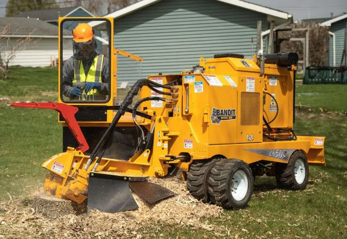 The Bandit Model 2650 is an outstanding mid-range stump grinder with standard four-wheel drive and aggressive diesel engine options for power. This machine is also available with an expandable rubber-track undercarriage for excellent all-terrain capability while still fitting through narrow backyard gates. The Model 2650 can tackle big stumps while still being maneuverable enough to handle small backyard removals.