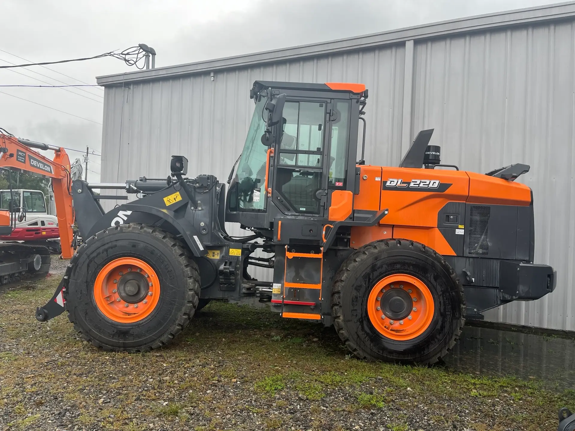 The Develon® DL220-7 wheel loader offers the durability and maneuverability needed for carrying and loading materials on rugged agriculture and construction worksites. The heavy-duty axles offer impressive lift capacities, and an optional larger counterweight further enhances performance. The box frame boasts added strength, while an articulating design ensures excellent load distribution and rigidity. To reduce clogging, wider radiator fin spacing and the standard reversible fan clear dirt, dust and other large debris. A deeper front fender offers additional wheel coverage, and an optional rear full fender also improves machine reliability. Contact ACT today to make this part of your fleet!