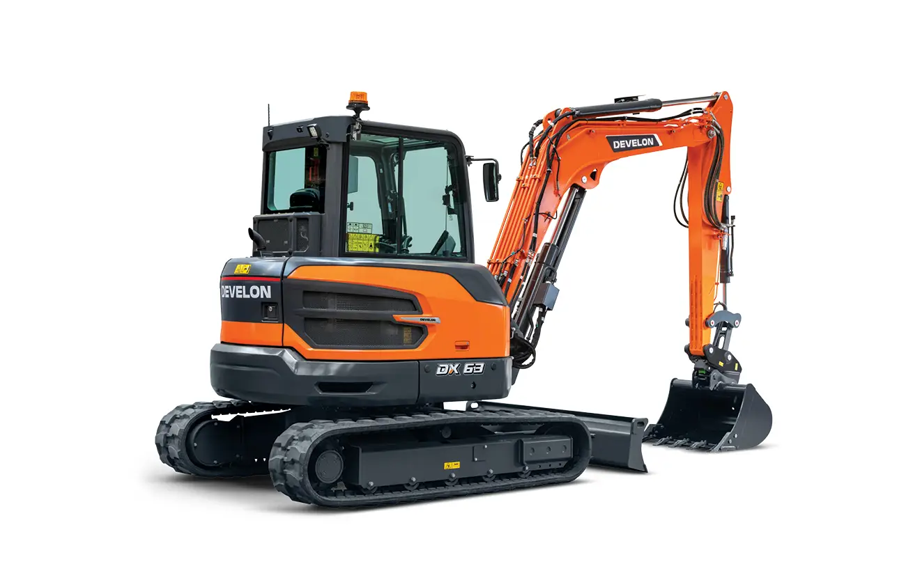 Confidently navigate through cramped or crowded job environments with the conventional tail swing DX63-7 mini excavator that delivers impressive over-the-side lifting performance.